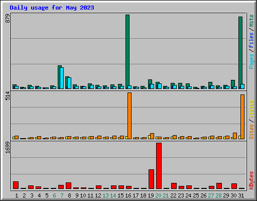 | Day | Hits | Files | Pages | Visits | Sites | KBytes | ||||||